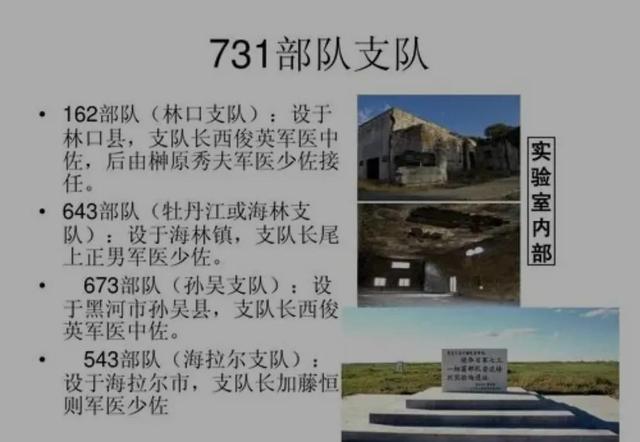 苏联对日宣战后不久731部队匆忙撤退前,将还活着的受害者全部施放毒气杀害,尸体投入炼人炉焚毁。储备的毒气弹深埋或者投入河流,携有鼠疫,炭疽等细菌或病毒的数以万计的野鼠,跳蚤,大眼贼全部放出,亲历者说那是难以描述的灾难场景。至于监牢和口字楼,由于太过坚固,埋了大量炸药才炸毁。