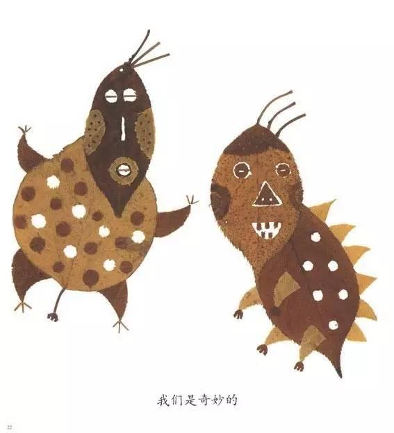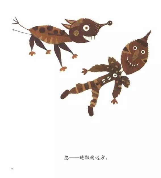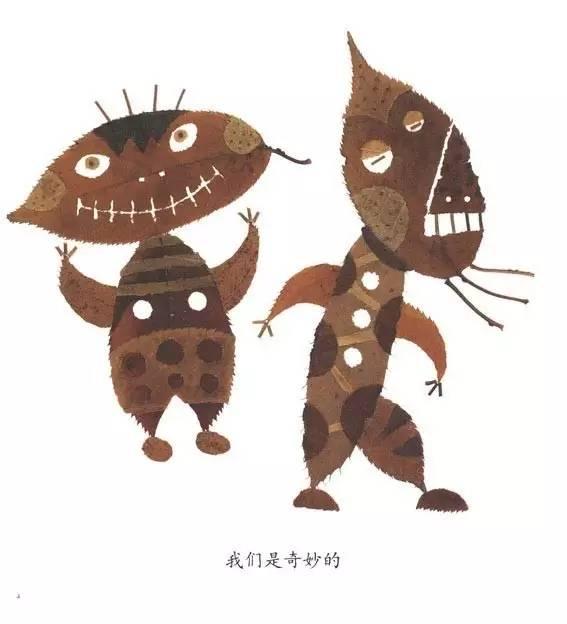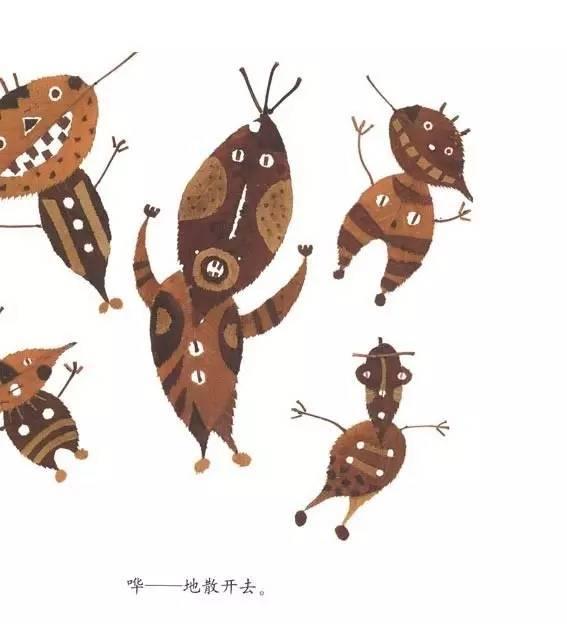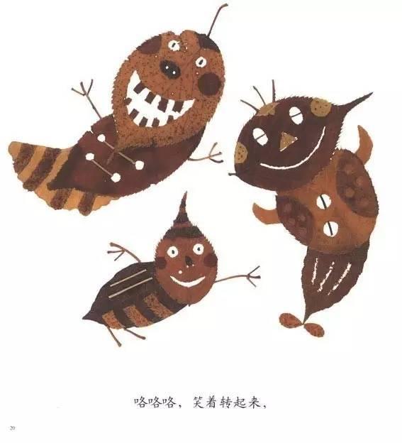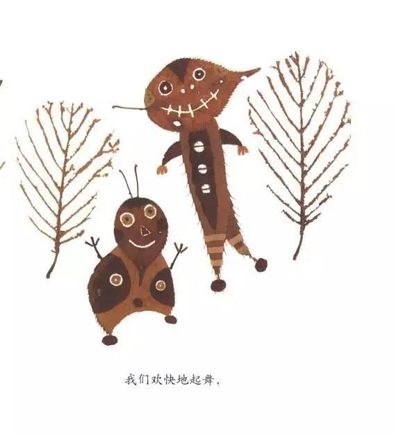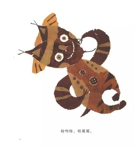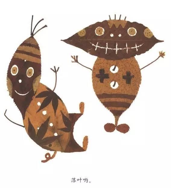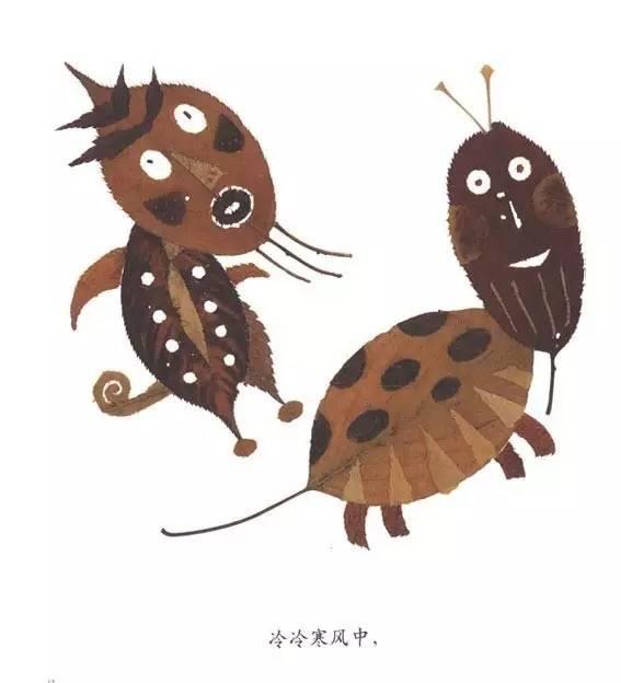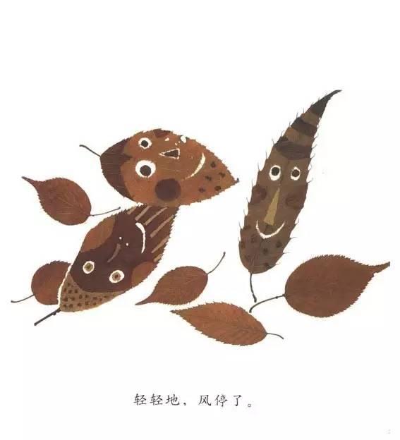 沙沙沙,起风了,在冬日寂静的树林里,一群落叶在快乐地跳舞……用实物剪贴的落叶形态各异,表情丰富,像魅惑的精灵,带出作者心中丰盈的诗意。