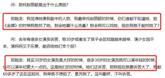 采访中郑晓龙维护赵丽颖的姿态很明显,不但夸赵丽颖流量高,还用其他明星举例对比,说自己不和演技不真实、表演能力不行,流量都是买的、忙着搞粉丝的明星合作,其实也就是在说赵丽颖完全不是这种明星,所以自己才和她合作嘛,这个拐着弯夸人的方式也是很厉害了。