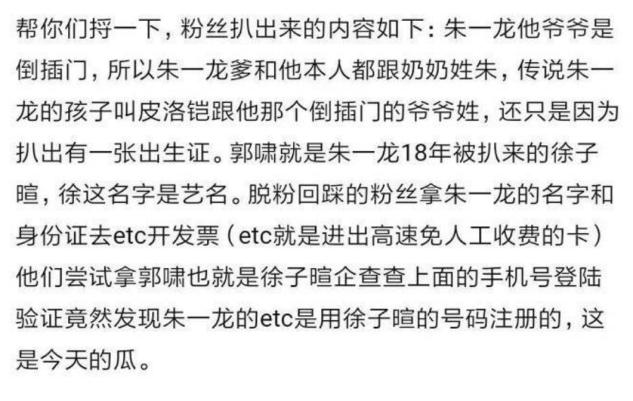 据悉,近日朱一龙被曝隐婚生子,和大学同学徐子暄不仅结婚多年甚至还有了二胎,而且朱一龙的爷爷据称是入赘的女婿,所以朱一龙姓朱,但朱一龙的孩子却姓了皮,和爷爷一个姓,是"三代还宗"。