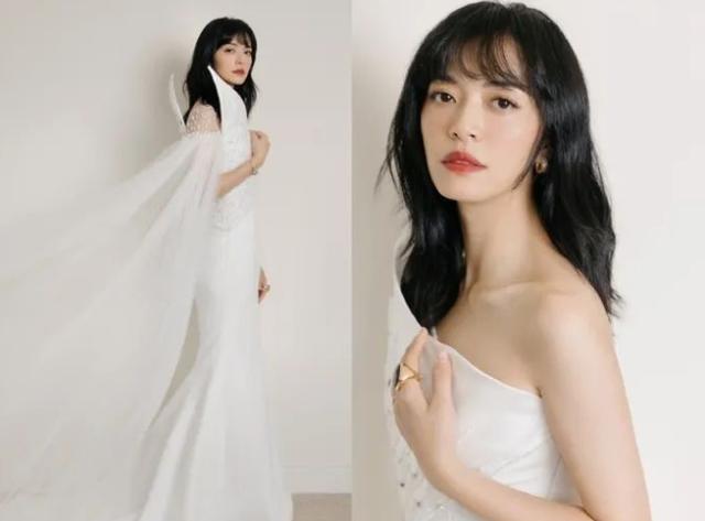 VOGUE红毯上,宋佳选择了一袭白色长裙。