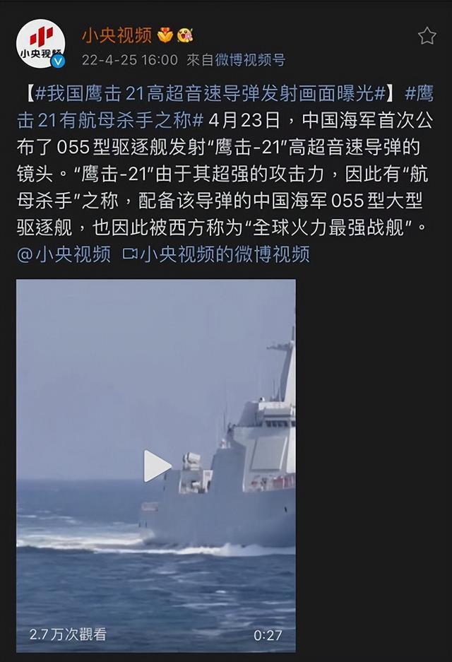 很快,就有官方媒体报道,该新型导弹是名为鹰击-21的高超音速导弹。并称该导弹因攻击力强大,被称为“航母杀手”。有一个“航母杀手”,恐怕很多人都对“航母杀手”这个名字不陌生了,几乎中国一有什么先进些的反舰武器,马上就会被称为“航母杀手”。这也使得,中国军队拥有了不少所谓的“航母杀手”。