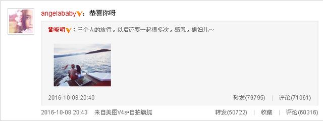 两人结婚一周年纪念日那天,黄晓明发微博告诉了大家一条喜讯,“三个人的旅行,以后还要一起很多次,感恩,媳妇儿~”。网友们也着实为他们感到开心,终于有了爱情的结晶。如今儿子出生了,他们两人感情也会越来越好,不管走到哪里,黄晓明都是一个护妻狂魔啊,祝福两人。