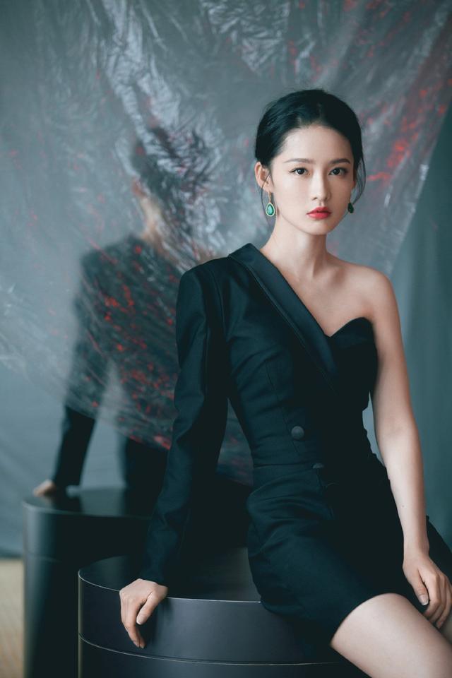 最后的就是一件黑色斜肩紧身礼服,看起来是不规则的,但是却是有一种不一样的美。而且这个颜色超级显白,使得她看起来高贵冷艳。相信大家也是一定会喜欢李沁的吧。