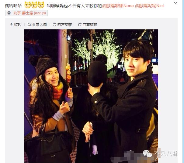 没@欧阳娜娜的但是关于她的微博更多,比如帮着她宣传她的电影《破风》;比如欧阳娜娜照相他拎包;比如直接写一个“@ 她” 暧昧至极啊!!
