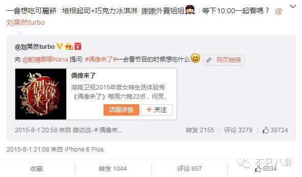 “刘昊然的微博除了吃饭睡觉就是欧阳娜娜”