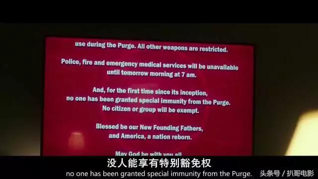 所以在清洗日这一天,一切犯罪行为,包括谋杀均为合法,持续12个小时警察、消防和紧急医疗在第二天7点之前均不可用。