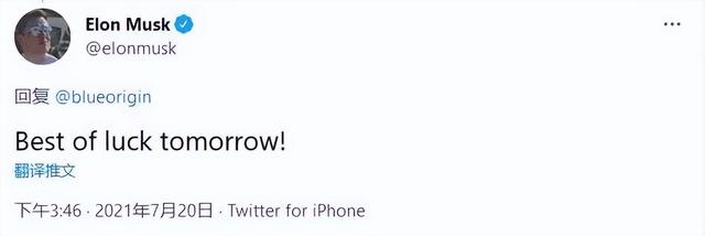 之前贝佐斯“飞升”的时候,马斯克就一边吐槽他飞得不够高,不算去太空,一边在出发之前礼貌祝福。