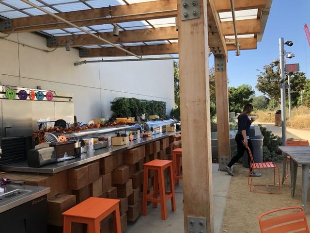 买了新鲜蔬菜放在楼底下随便拿,咖啡、西点摆满大堂。