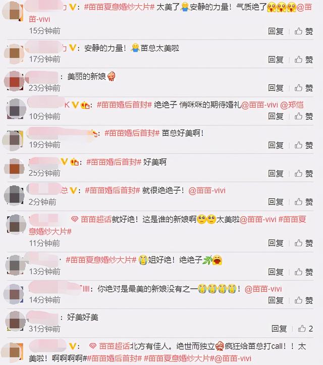 话说回来,对于婚后首次穿上婚纱拍摄大片的苗苗,相信也是在为她和老公郑恺下半年的婚礼做准备,穿上白纱的苗苗真的好美啊,期待看到她与郑恺的婚礼!