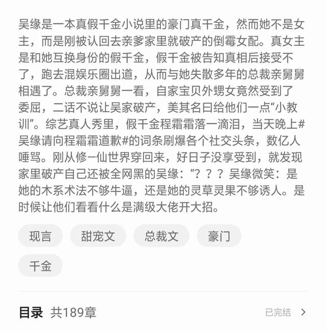 算是最近比较满意的一本小说,这本书我喜欢的原因很简单,打破了玛丽苏文的套路,撕白莲圣母真的太爽了。←这又不得不夸作者文笔了,一部小说两个风格,很厉害。就是印象中看过类似的,也不知道哪个作者借鉴的