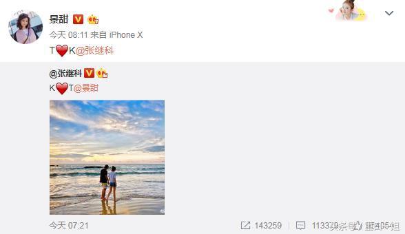 前几日,张继科晒和景甜海边牵手照宣布恋情,随后景甜转发盖章认爱。照片中,两人手牵手漫步在海边,十分恩爱甜蜜。从微博互动,写藏头诗,抢红包,情侣头像,到现在终于公开了,恭喜!