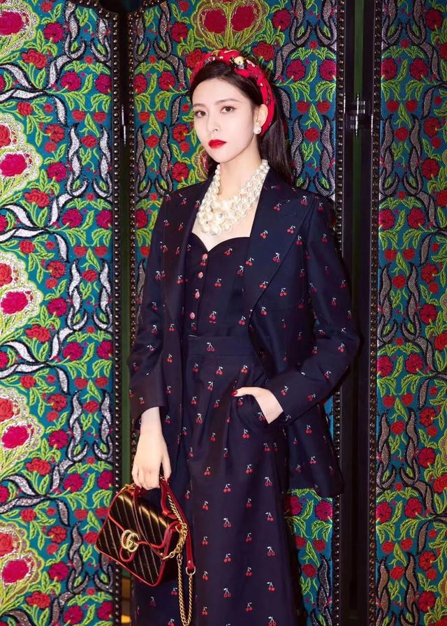 印花的连衣裙想必大家都有,但少有人会在外面继续叠加同系列花外套,CC就这么搭了,并且一点也不“土”,甚至还有点好看。秘诀就是配饰戴得好,Gucci的珍珠项链和珍珠耳环在这套略显花哨的穿搭中就是一剂调味料,既强调了风格又平衡了色彩。