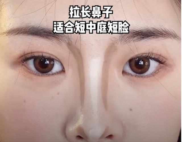 简而言之,如果是长脸,化鼻子时,需要把高光延长,从鼻基底化到山根处,利用阴影缩短两侧。而眼影,长脸就需要化眼睑下至,以及卧蚕,上眼睑可以浅化,短脸则相反。