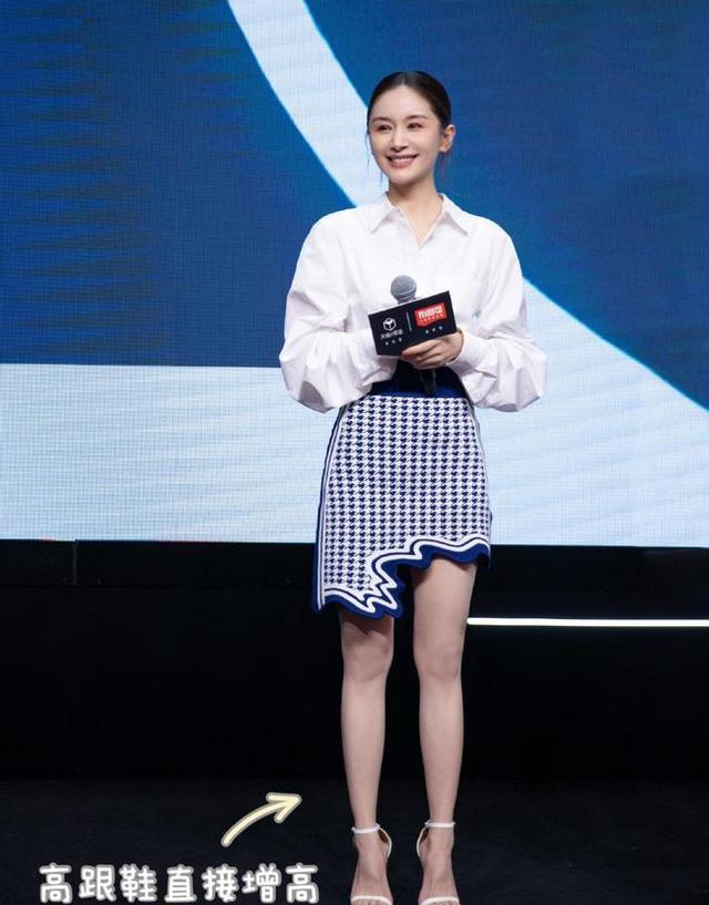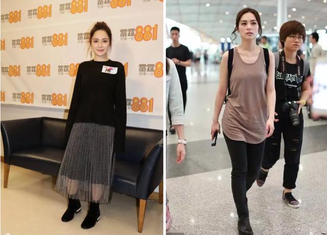 ,尤其是身材比例不算好的情况下,钟欣潼这两身就中招了,不管是黑色上衣配半裙还是吊带配紧身裤,她都犯了同样的错误,就是选择中长款上衣,营造了上长下短的比例。