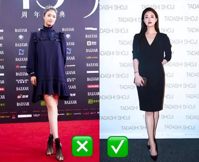虽然大骨架显高,但穿衣容易显胖,看起来就会肩宽背厚,比如宽松的就会横向拉宽,而穿稍有修身的衣服再加上露肤的V领就会显高很多,看蒋欣的这两套衣服你就明白了。