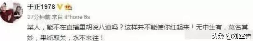 但是,于正却在微博否认了这个说法,还斥责孙耀琦是蹭热度。