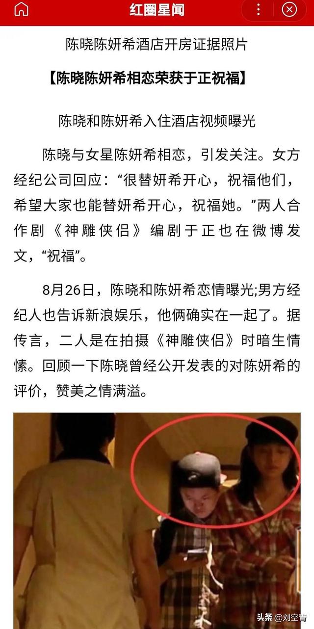 但这部戏拍着拍着,陈晓和陈妍希绯闻来了。15年8月,两人开房被拍,后来采访中,陈晓提到陈妍希和自己是在《神雕侠侣》暗生情愫。