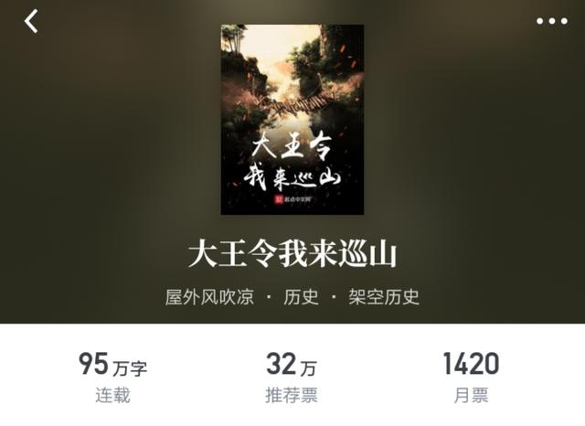 《大王令我来巡山》,屋娘的作品。虽然分在历史分类,但我当做玄幻小说来看的。