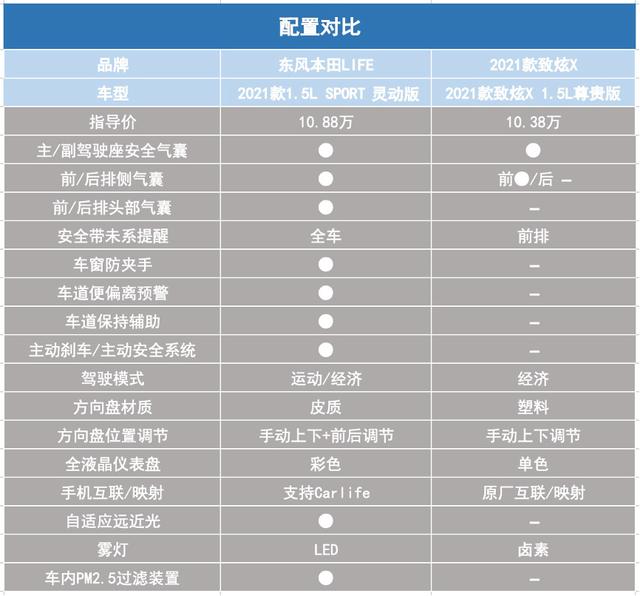 在配置上,东风本田LIFE与广汽丰田致炫X同样选择了截然不同的方向。即便我们以2021款致炫X的顶配车型来与LIFE的2021款SPORT灵动版进行比较,发现两者在智能互联、智能安全等方面,东风本田LIFE都是更具有诚意的。