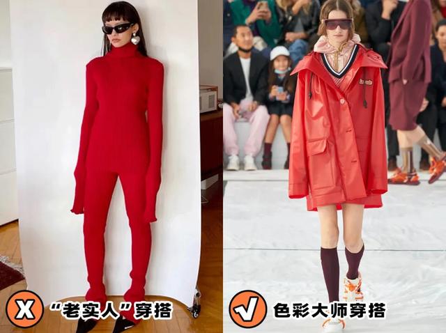 除了面积大,亮色系也容易引起大家注意。红色本身就是一个足够吸睛的颜色,如果是亮红色搭配起来难度升级。