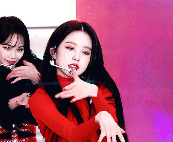 她经常穿红色出镜,本身长相属于淡颜系,穿上红色更显甜美。