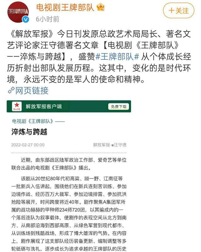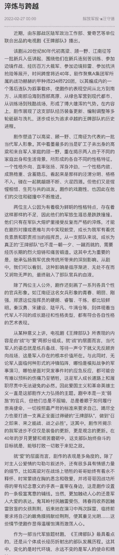 网上的一篇关于《王牌部队》的文章——淬炼与跨越。这是业内一位知名评论人对这部剧作出的一篇文章的剖析。