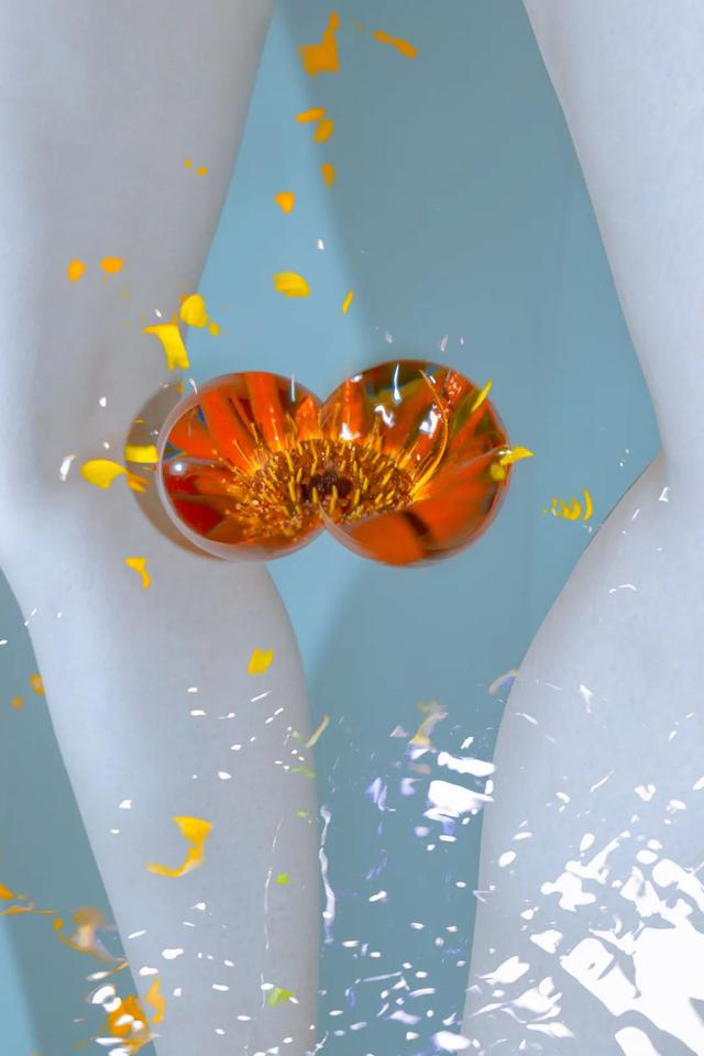 这一次,她将镜子作为女性对自己性别身份的一种关照,从而意识到自己有这样一种力量,是一种内观和自省。“我希望用能代表女性特质的东西来表现女性的阴柔之美。”冀小同相信,女性有着异于男性的力量,不激烈、不凶猛,难以捕捉而无处不在。在这组作品中,她将其比作涓涓不息、滋润万物的水:善利万物而不争,却蕴藏着改变一切的潜能。过去,或许连女性自己都并未意识到它的存在,但如今,女性意识的不断觉醒正在让情况发生改变。冀小同使用了隐喻内观和自省的镜子来呈现这一现状:通过不断地观照自身,这种力量正被女性不断认识和发掘。如我们所看到的那样,如今,由女性的力量浇灌出的花朵,正热烈地绽放。