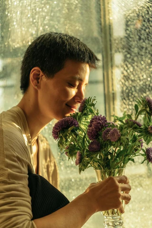 针对这次与《周末画报》的主题合作,戴显婧挑选并邀约了两名拍摄对象。她们都是表演专业毕业,而今都还在从事表演行业的工作。一位是表演专业的大学教师,也自己演戏;一位除了表演之外逐步参与影视制作的幕后,喜欢书法、茶道和酒。前者已经步入婚姻并有了孩子,却并未与丈夫朝夕相处生活;后者保持单身独居的状态,渴望爱却不将就。在日常生活中,她们都喜欢定期买花,装点家中,对于不同的花的选择,一如自我在当下的表达,以花传情,以花愉悦。不论是怎样的身份和生活状态,花成为了一种自我倾诉和见证当下的时间之物,花开花落之间,便是她们生活的寻常以及自我观照的陪伴者。
