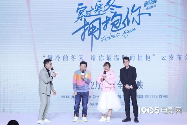 11月23日,《穿过寒冬拥抱你》在京举行发布会,导演薛晓路,演员黄渤、贾玲、朱一龙齐亮相,黄渤向2020感动中国人物快递员汪勇送上拥抱。电影总制片人傅若清到场并推荐影片。