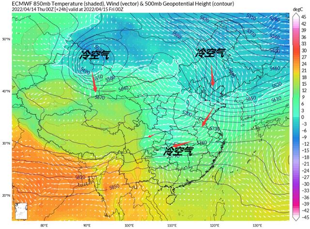 在4月15日的时候,冷空气就会大规模在我国内陆区域扩散,并且降温的范围将会进一步扩大。
