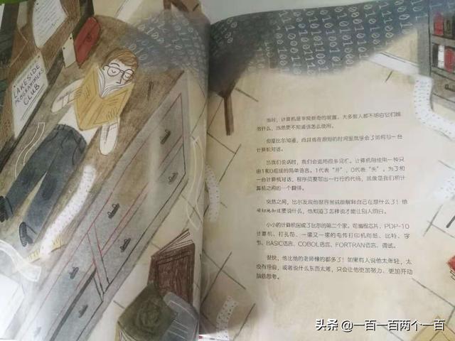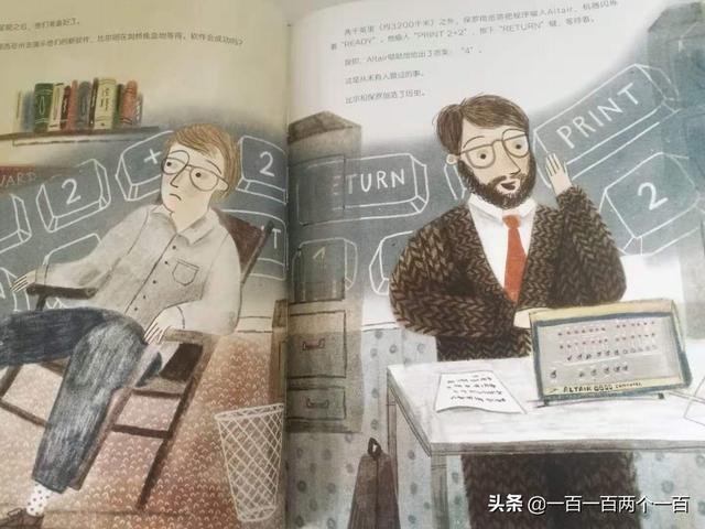 这个绘本重点讲述了创办微软之前的比尔盖茨的成长经历,比如从祖母那里学会玩各种纸牌游戏,思考怎么能赢;参观西雅图1962年世界博览会接触了科技最前沿的东西,开启了了解未来,了解一切东西的好奇心;转学到湖滨中学,结识了一帮热爱数学和科学的同学,发现了ASR电传打字机并进入了计算机的二进制世界;大学后和保罗一起用BASIC计算机编程语言完成了适合第一台个人计算机装备Altair8800的软件,通过一行行代码让计算机成为按照人类指令行动的智能机器,由此开创了一个新时代,也成为了此后比尔盖茨坐稳世界首富的坚实基础,也让世界首富几乎成为了他个人的专属名词,由此,比尔盖茨被捧上神坛。