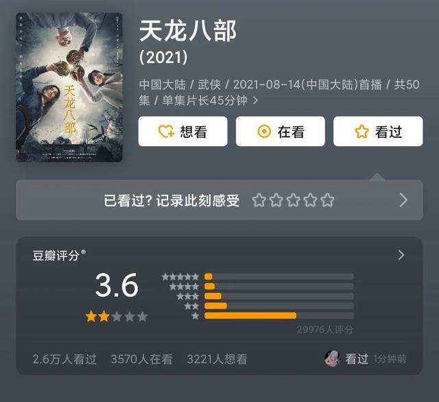 新《天龙八部》开播已经有一段时间了,网友们对此剧真的是褒贬不一,经典影视作品翻拍,想要超越前作,难度不小。果然,电视剧新《天龙八部》一经播出,豆瓣3.6的评分早已说明了一切。