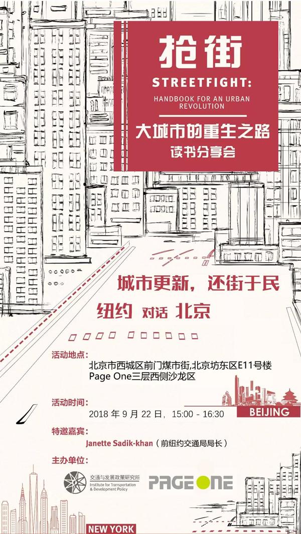 珍妮特·萨迪-汗本次活动,《抢街:大城市的重生之路》作者珍妮特·萨迪-汗以及赛斯·所罗门诺将来到北京,与读者分享创作历程以及她掀起的纽约市历史性的街道变革始末,并为到场购书的读者签名。