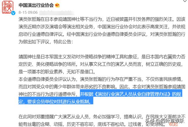 除此之外,要对艺人实质性进行制约的话,那就要有配套的规则了。在今年中国演出行业协会可谓是频频亮相,特别是在对失德艺人的处理上,提出了“拉入行业黑名单”以及“要求会员单位对其从业进行抵制”等等做法。