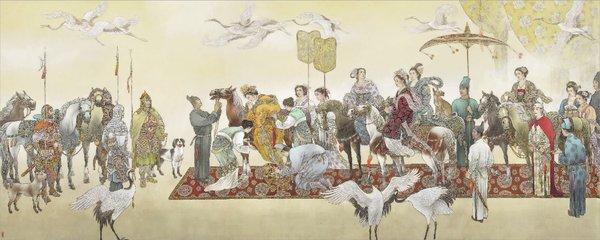 有一个骑马官人是何等骄横,车前下马从绣毯上走进帐门。