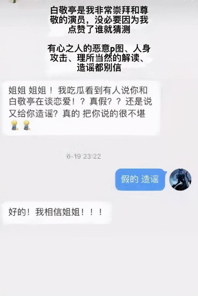 事情曝光之后,有网友问到女方称“我吃瓜看到有人说你和白敬亭在谈恋爱真假,还是给你造谣,真的把你说得很不堪”,女方回应道“假的”。