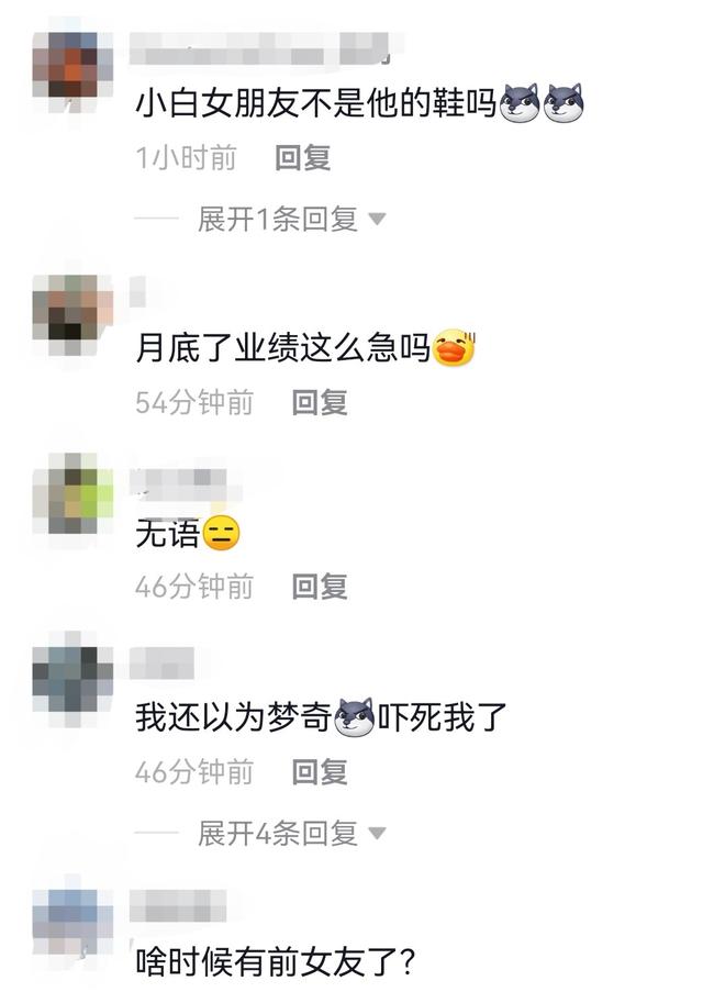 很多网友看到这个消息后留言道“小白女朋友不是他的鞋吗?我还以为是梦奇吓死我了,小鬼什么时候有前女友了”。