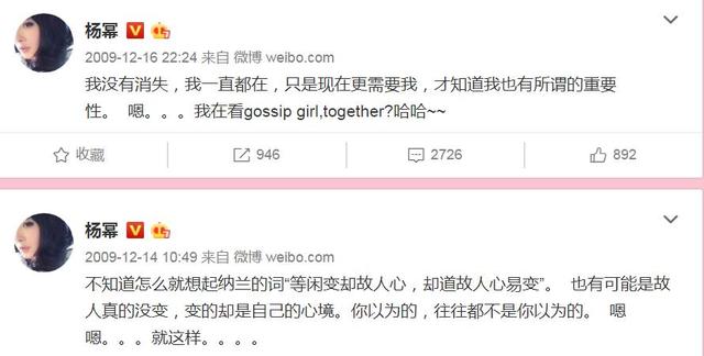 而且刚出道的杨幂是真的可爱,微博刚出来那会儿,她几乎把微博当成了一个记录心事的地方。