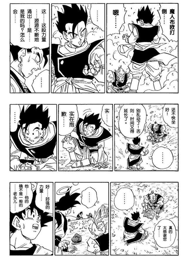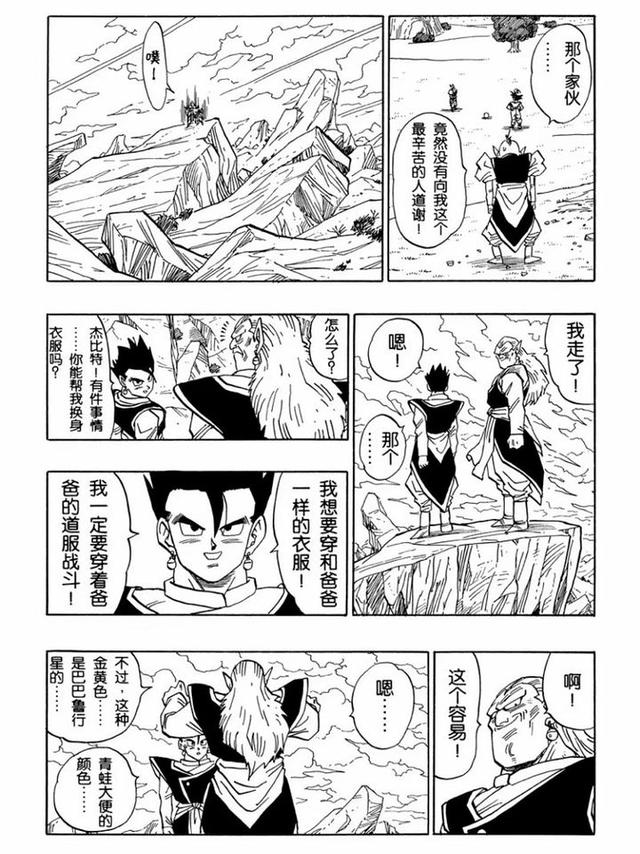 所以按照当时人物的心情来说,穿道服可谓有着相当充足的理由:那个一路信任、包容、激励我的父亲从此与我告别了,这次以后我们大可能不会再见面了,为了保护地球上的生命、保护我身边重要的人们、也为了铭记我的父亲,这一战我想要穿和父亲一样的衣服战斗,不,我一定要穿和父亲一样的衣服战斗!并打倒魔人布欧!