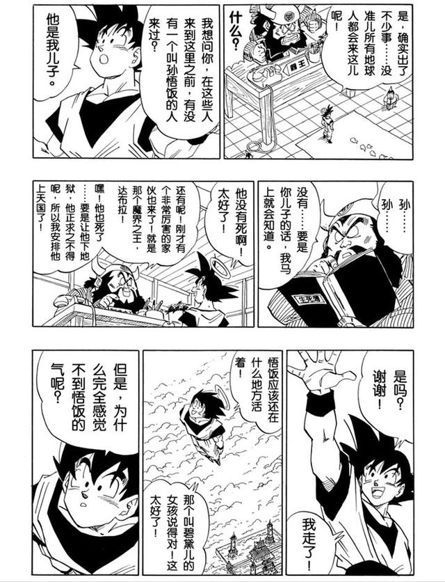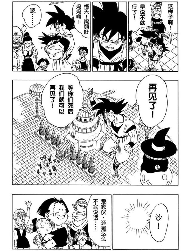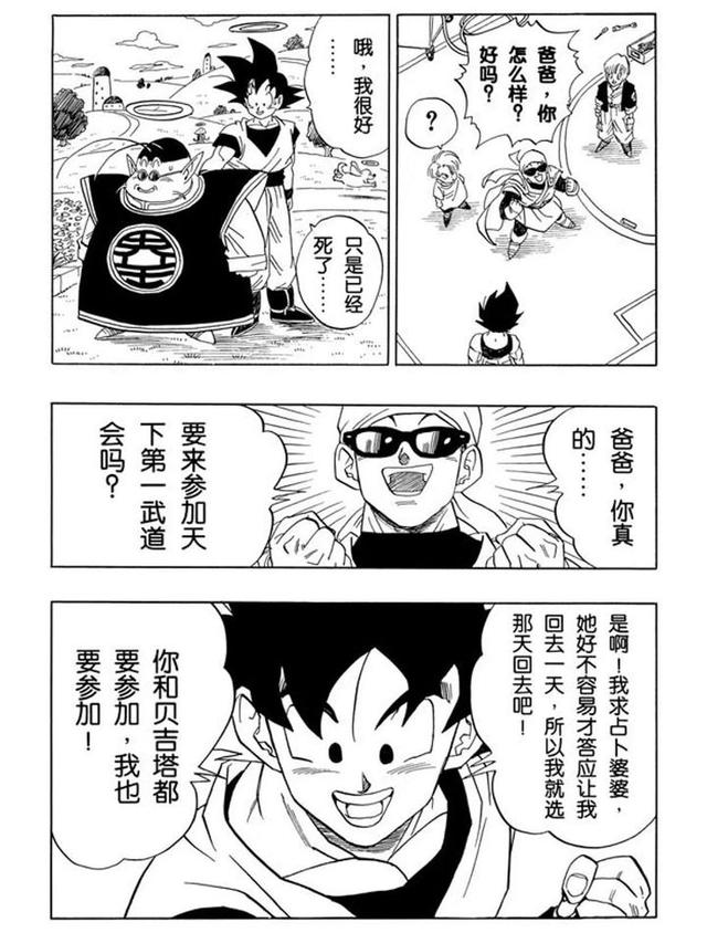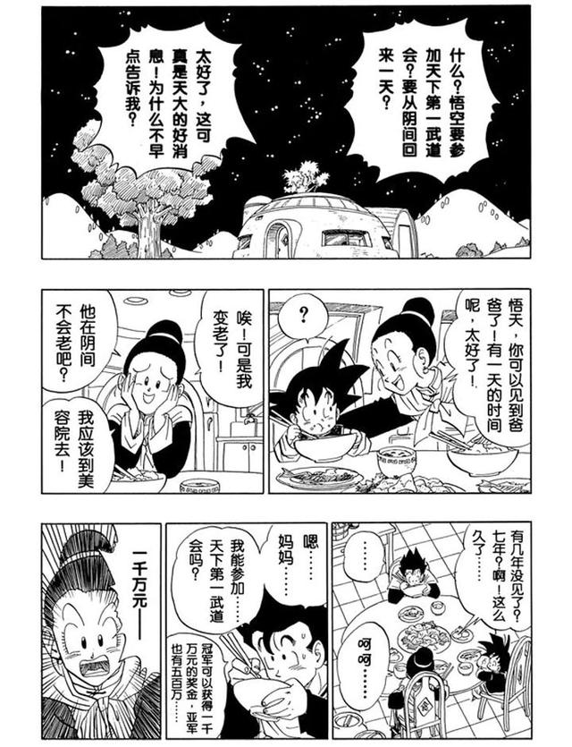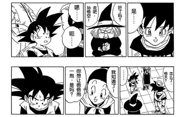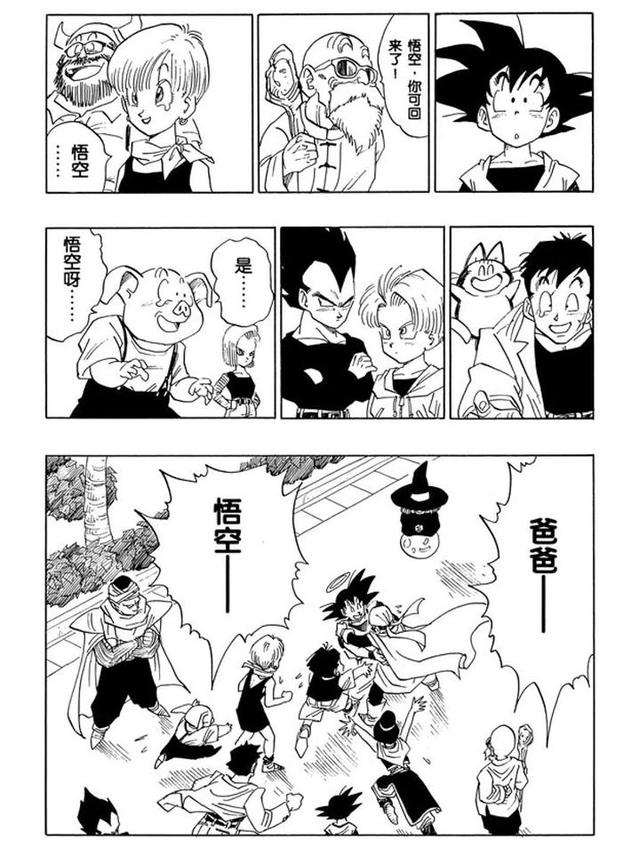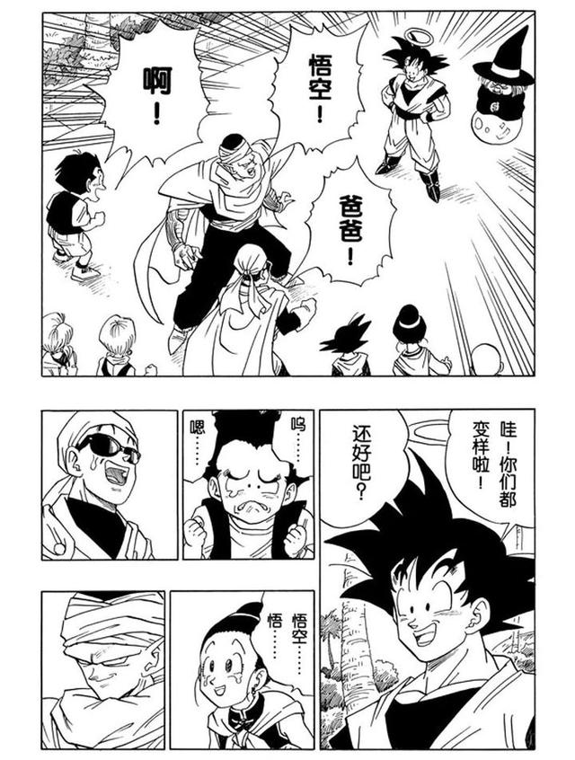 虽说马上被钱的注意力吸引走了,不过那之前也还是有“天大的好消息”“为什么不早点告诉我”“悟天你可以见到爸爸了”,以及“悟空在那里没老吧,但我老了,哎我应该去美容院保养保养”。