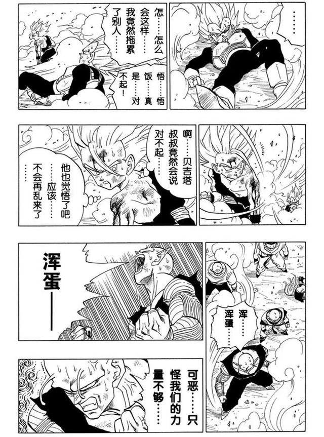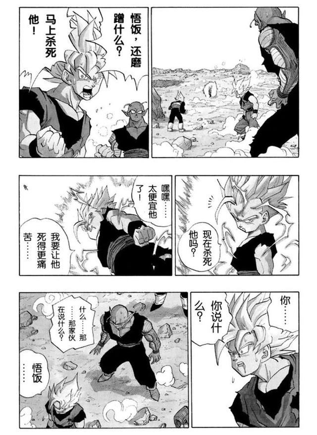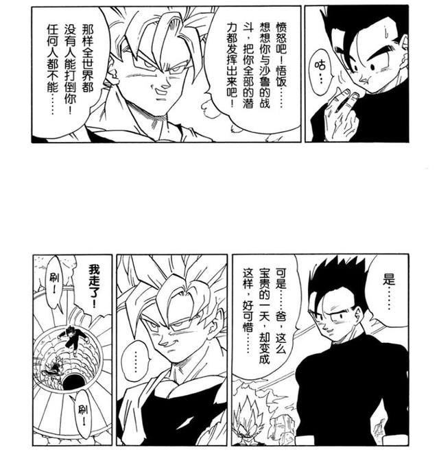 以前看这图感觉怪怪的,觉得悟饭被画得太“招摇”抢走了太多的注意力。但如今看来,按当时悟饭的感情,以及老鸟在沙鲁篇后期的意图,这样子刻画反而才是最合逻辑的。