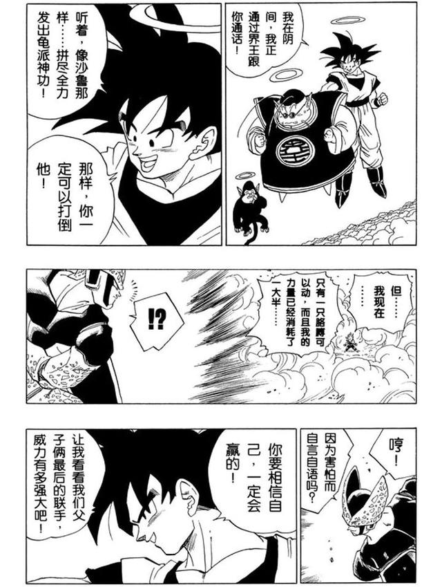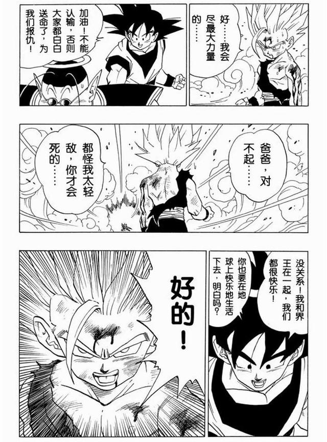 最后这一龟波气功,若没有悟空一路的包容、安慰、激励,以及他对悟饭能力的肯定和信任,结果会怎样各位可想而知。正如老鸟所画的,悟空此时真的就像在悟饭身旁、与他一同发出了这拯救世界的一击: