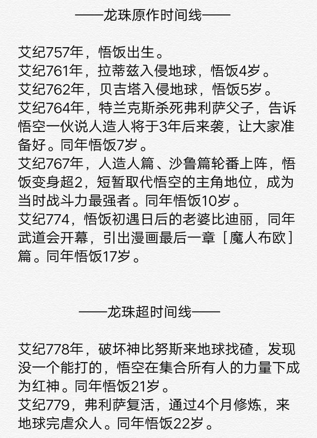 注:以上资料整理自百度百科“悟饭”页面,另外悟饭在精神时光屋里面修炼的那一年没有算。