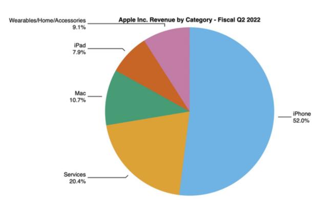根据苹果公司2022年Q2财报数据显示,来自Apple Music、iCloud和App Store费用等服务达到198.2亿美元,同比增长17.28%,超过了除iPhone以外其它所有硬件的收入,成为苹果公司的第二增长曲线。