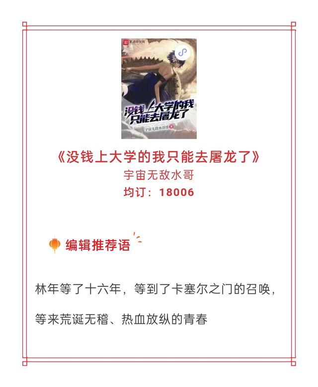 7、《没钱上大学的我只能去屠龙了》:均订一万八
