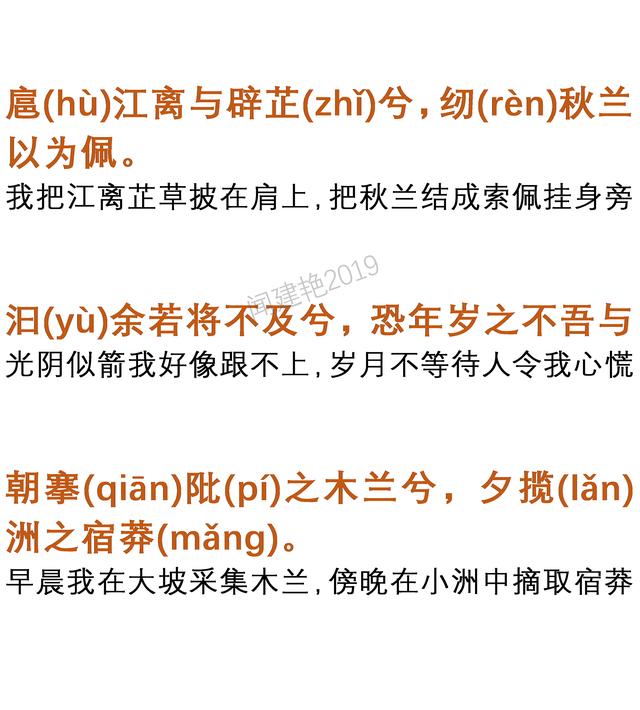 逐行翻译《离骚》高中文言文,2019年整理,利用零碎时间,看几分种,培养文言文语感。初中同学,也可提前看一看。请关注闻建艳,后续精彩内容。