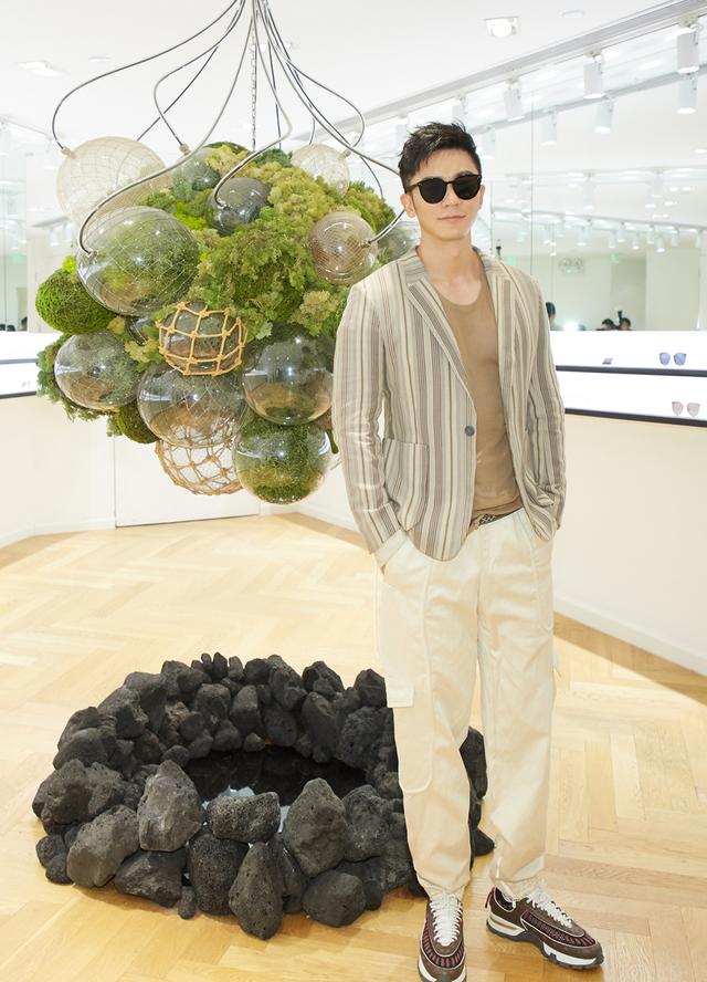 还有他在活动上,条纹西装搭配米白色长裤轻松休闲,温柔的印花和配色把正式的西装都带出自然柔和的氛围,暖男风十足。