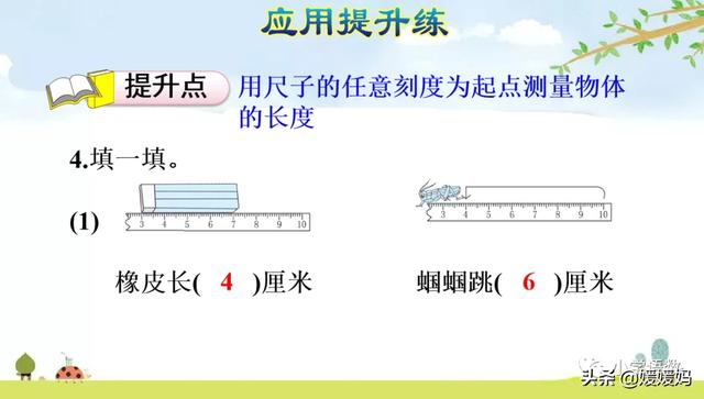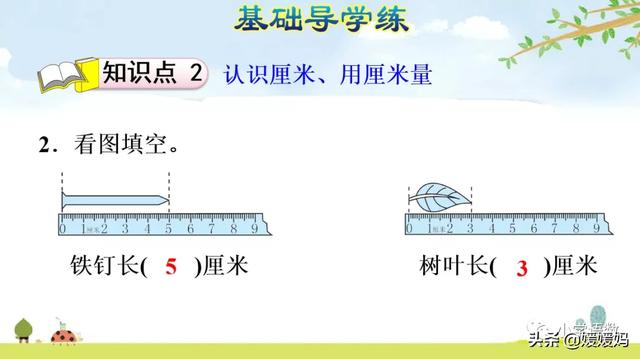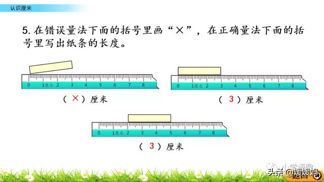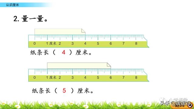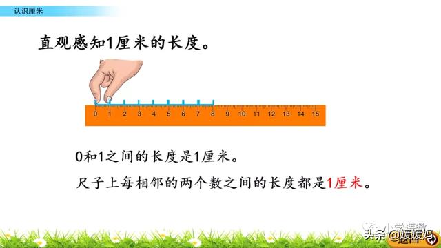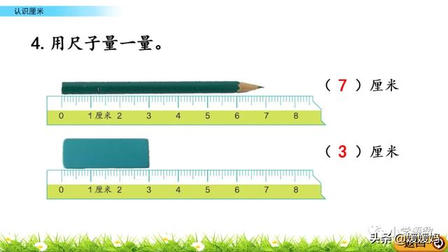 4.在厘米尺上,每相邻两个数之间的长度是1厘米。