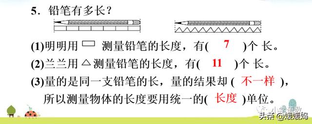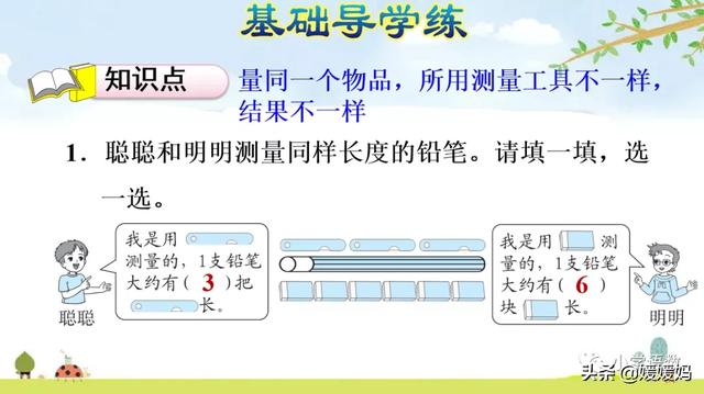 1.在测量物体长度时应该选用相同的长度单位,也就是要统一长度单位。